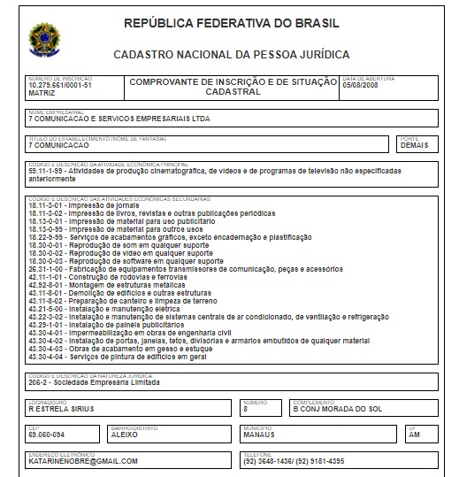 De acordo com dados do site da Receita Federal, a empresa possui como atividade econômica principal produção cinematográfica, de vídeos e de programas de televisão não especificadas anteriormente e seu capital social é de R$600.000,00 (Seiscentos mil reais).