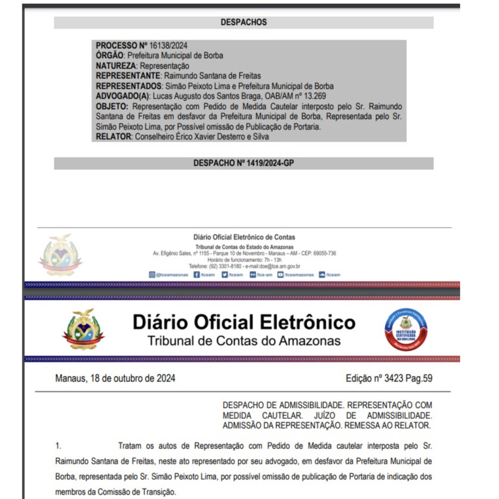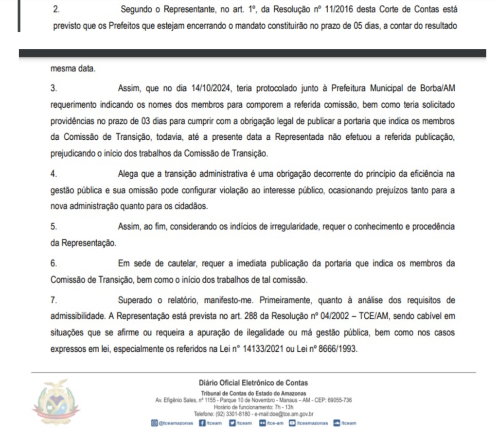 Amazonas – O Tribunal de Contas do Estado do Amazonas (TCE) mandou o atual prefeito de Borba, Simão Peixoto, indicar a equipe de transição no município.