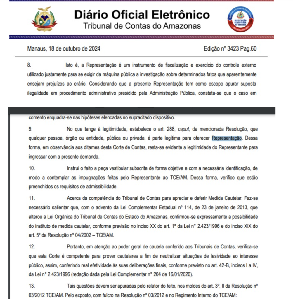 Conforme publicação do órgão, uma possível omissão por parte de Simão Peixoto foi identificada, em relação a uma Portaria de indicação dos membros da Comissão de Transição. Esse processo, que é obrigatório, ainda não foi realizado pelo chefe do executivo municipal.