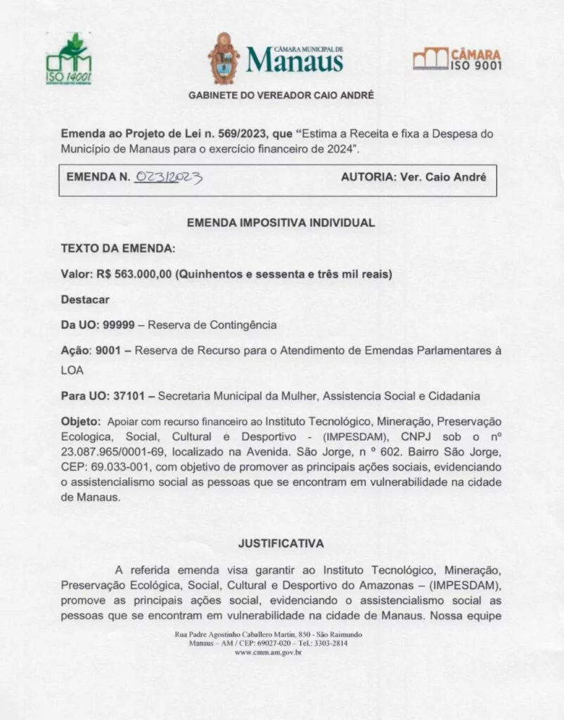 Caio André foi eleito em 2020 e inicialmente prometeu modernizar e trazer maior transparência à CMM. No entanto, sua presidência se tornou sinônimo de retrocesso. Em 2022, a Câmara era a mais transparente do Amazonas, com 73,82% no Radar de Transparência Pública. Contudo, em 2023, a CMM viu sua classificação despencar para uma situação alarmante de “inexistente”. A falta de envio de informações sobre gastos, contratos e licitações aos órgãos de controle deixou a gestão opaca e a população à mercê de decisões questionáveis.