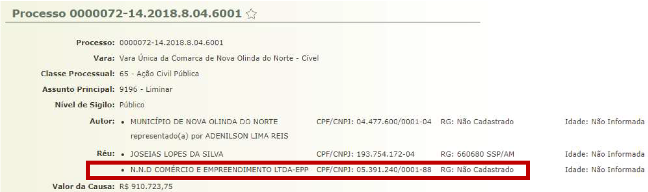 Na denúncia, Amil, que também é advogado, afirma que a empresa de Natália está envolvida em processos de improbidade administrativa movidos pela prefeitura de Nova Olinda do Norte. Os processos alegam desvio de recursos públicos no valor de R$ 910.723,77, relacionados a aluguéis, compras, cheques sem fundo e contratação de serviços não pagos.