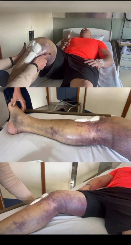 A imagem divulgada por seu advogado, Paulo Faria, mostra o joelho do ex-deputado bastante inchado e com sinais de possível infecção. Silveira passou, no último dia 26 de julho, por uma cirurgia de reconstrução do ligamento cruzado anterior e reparo do menisco do joelho direito. Desde então, sua recuperação tem sido marcada por dores intensas, febre e agora a suspeita de infecção articular.