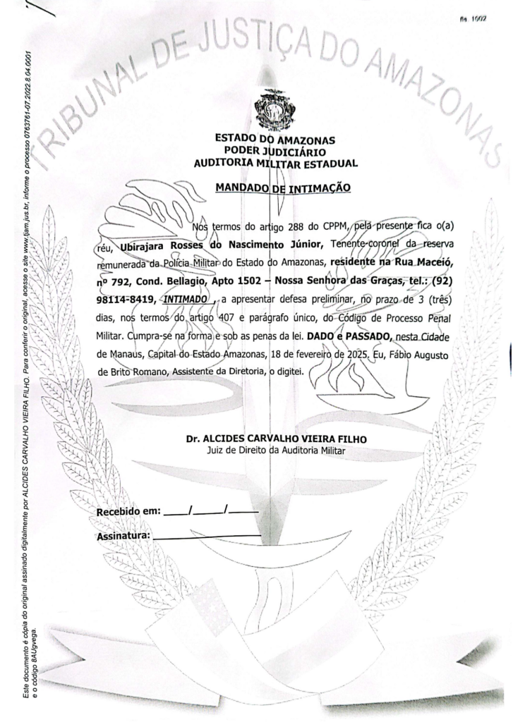 Amazonas – Na manhã desta segunda-feira (24/2), o vereador Coronel Rosses (PL) recebeu, na sede da Câmara Municipal de Manaus, um ofício oficializando sua expulsão dos quadros da Polícia Militar. Segundo o vereador, o pedido da medida tem “nome e sobrenome”: o governador Wilson Lima (UB), que seria o responsável pela perseguição política e uso de processos administrativos para coagir opositores.