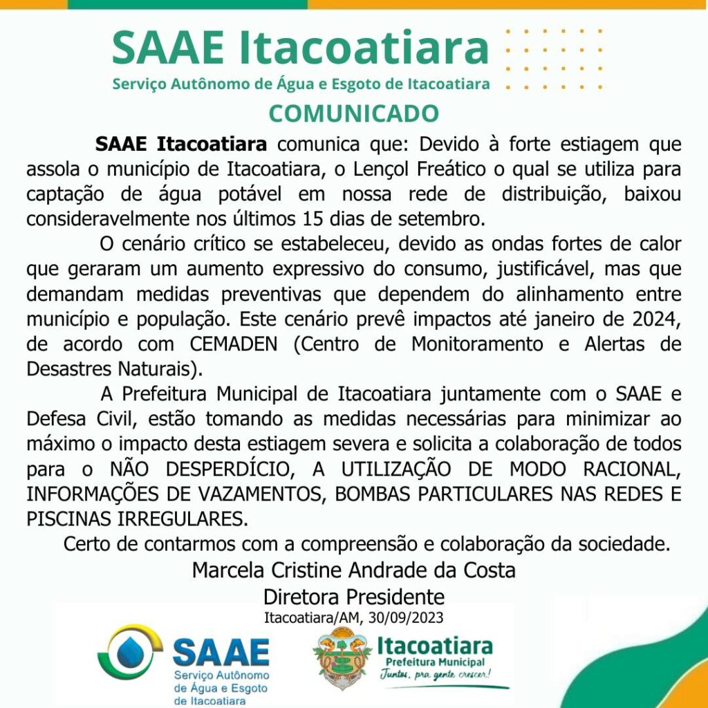 No entanto, em Itacoatiara, a situação é peculiar. O Serviço Autônomo de Água e Esgoto (SAAE) alertou que a seca severa impactou significativamente o lençol freático usado para o abastecimento de água na cidade. A escassez de água é uma ameaça real e iminente para os moradores locais. Apesar disso, até o momento, a cidade está apenas em estado de alerta, sem um decreto de calamidade.