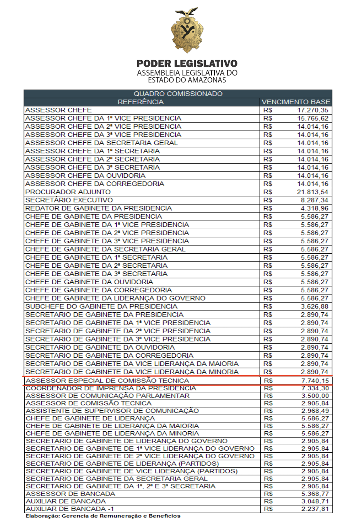 Esta função de Akerna rende à ela um salário inicial de R$ 7.740,15 por mês, conforme consta na Tabela de Cargos e Salários disponível no Portal da Transparência da Aleam. Enquanto para alguns faltam empregos e oportunidades, para Akerna essa realidade é inexistente. Atualmente, ela ocupa a posição de coordenadora da Procuradoria da Mulher da casa legislativa, mesmo tendo que fazer 30h semanais no outro emprego.