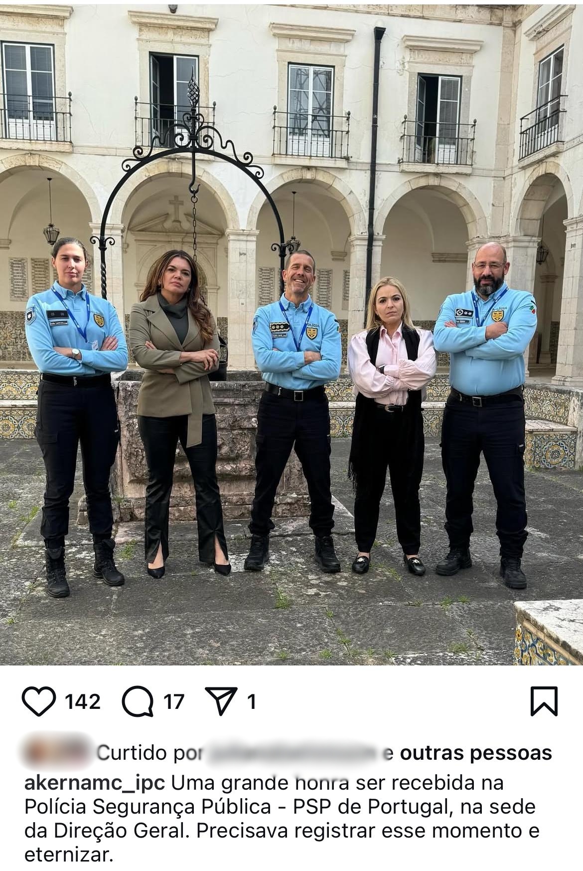 Durante a visita, ambas participaram de uma reunião na sede da Direção Geral da Polícia de Segurança Pública (PSP) de Portugal, devidamente registrada no Instagram de Akerna: “Uma grande honra ser recebida na PSP de Portugal, na sede da Direção Geral. Precisava registrar esse momento e eternizar”, escreveu.
