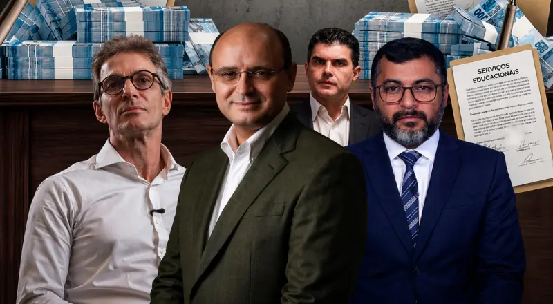 As digitais de Rossieli Soares, ex-secretário de Educação do Amazonas, aparecem de forma recorrente nos contratos mais vultosos da empresa. Em Minas Gerais, sob sua gestão, a Fazer Educação garantiu um contrato de R$ 348,4 milhões assinado na antevéspera do Natal de 2024. Estratégia similar foi adotada no Pará, onde Rossieli também comandou a pasta da Educação. A relação ganha contornos ainda mais sensíveis quando se observa o financiamento eleitoral: em 2022, Rossieli recebeu doações de Mario Ghio Jr., então presidente da Somos Educação — gigante do setor que produz os livros que a Fazer Educação revende como “representante exclusiva” aos governos.