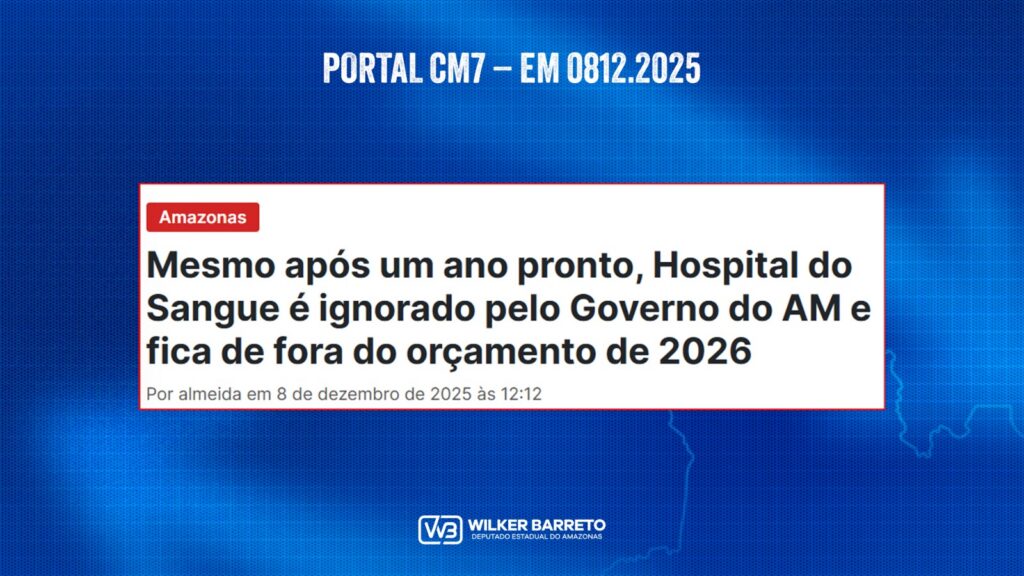 Amazonas – O deputado estadual Wilker Barreto (Mobiliza) voltou a usar a tribuna da Assembleia Legislativa do Amazonas (Aleam), nesta terça-feira (9), para denunciar o que classificou como um “colapso anunciado” na saúde pública do Estado. Além de expor o abandono do novo Hospital do Sangue do Hemoam, que permanece fechado há mais de um ano mesmo após estar concluído e licenciado, o parlamentar também criticou a falta de especialistas em unidades de referência — citando diretamente o discurso da médica intensivista Dra. Ludhmila Hajjar, que detonou a conduta da equipe do Hospital Santa Júlia após a morte do pequeno Benício, de 6 anos, por overdose de adrenalina.