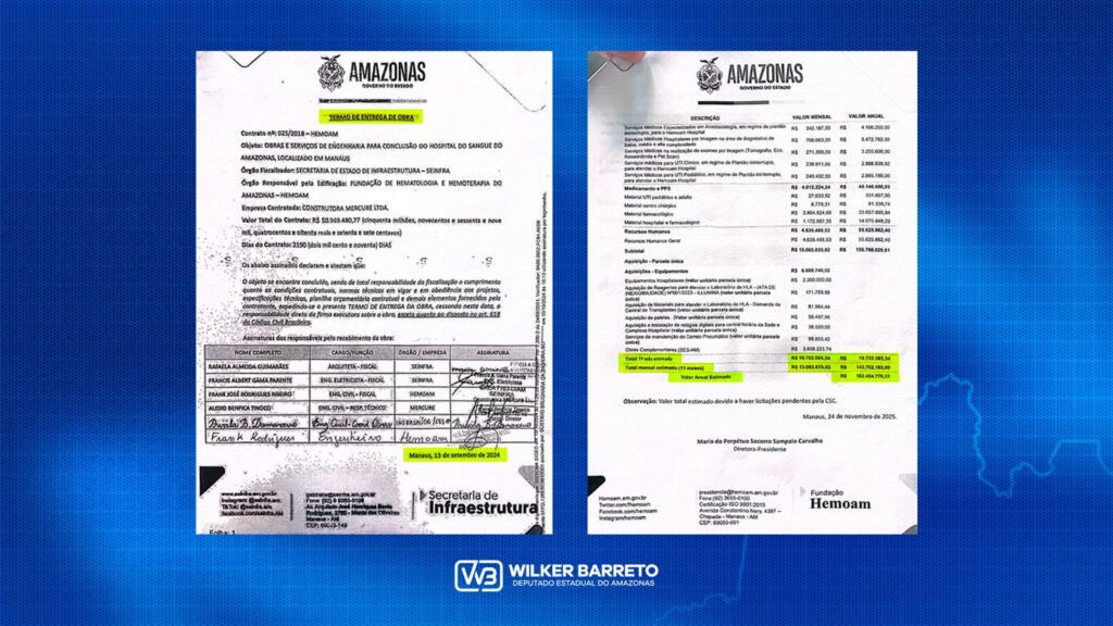 Segundo dados oficiais da Fundação Hemoam, são necessários R$ 163 milhões anuais — cerca de R$ 13 milhões por mês — para operar o hospital e concluir equipamentos finais. O parlamentar comparou o montante ao orçamento estadual de R$ 38 bilhões e ao recente empréstimo de R$ 1,5 bilhão aprovado pela própria Assembleia.