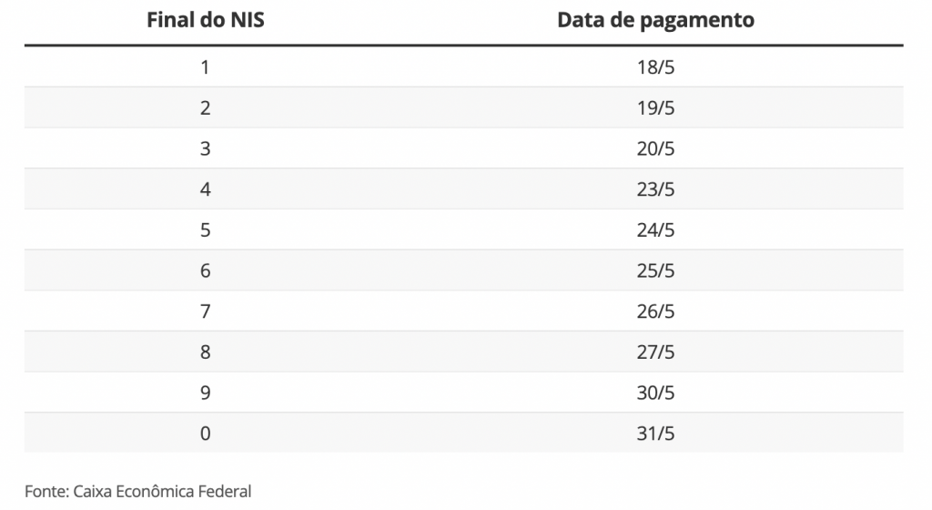 Pagamentos são feitos de acordo com o número final do NIS do beneficiário