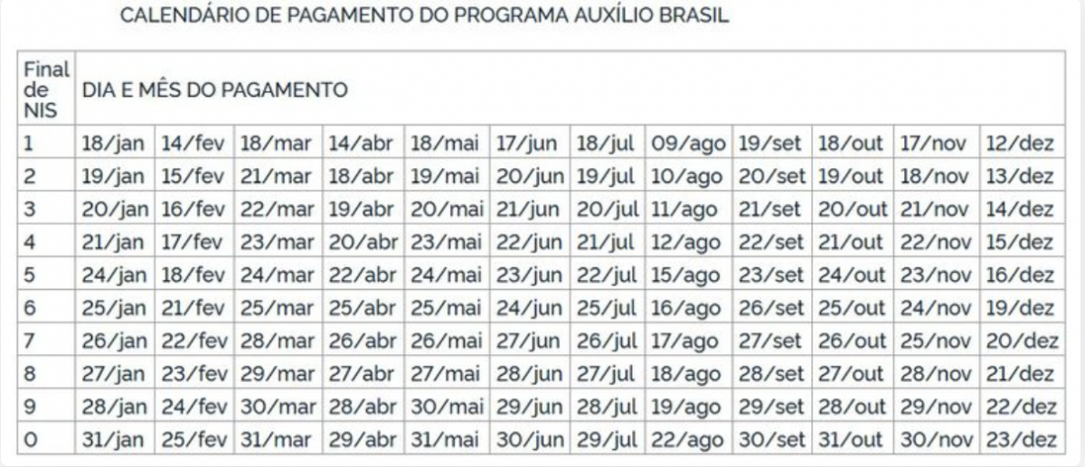 Em janeiro, o valor mínimo do Auxílio Brasil voltará a R$ 400, a menos que nova proposta de emenda à Constituição seja aprovada. Tradicionalmente, as datas do Auxílio Brasil seguem o modelo do Bolsa Família, que pagava nos dez últimos dias úteis do mês. No entanto, portaria editada no início de agosto antecipou o pagamento da parcela deste mês para o período de 9 a 22.