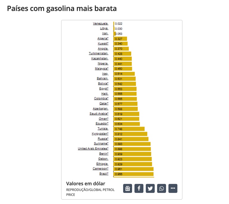O ponto central é compreender o peso da gasolina no bolso do cidadão no dia a dia, e isso só é possível comparando com o salário médio ou mínimo de cada país.