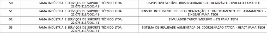 Além do reconhecimento como EED, a Fama Tech teve quatro produtos homologados como Produtos Estratégicos de Defesa (PED) pela Portaria GM-MD nº 4.428, também de 30 de setembro. Esses produtos são: