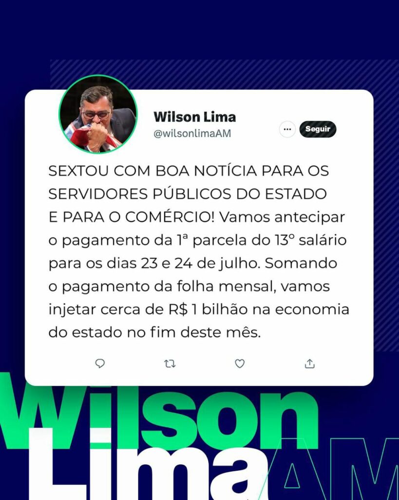 Amazonas – Nessa sexta-feira (12), o governador Wilson Lima anunciou a antecipação da primeira parcela do décimo-terceiro salário dos servidores públicos estaduais para os dias 23 e 24 de julho deste ano. A medida visa não apenas beneficiar os funcionários públicos, mas também impulsionar a economia do Amazonas, com a injeção estimada de 1 bilhão de reais no fim deste mês.