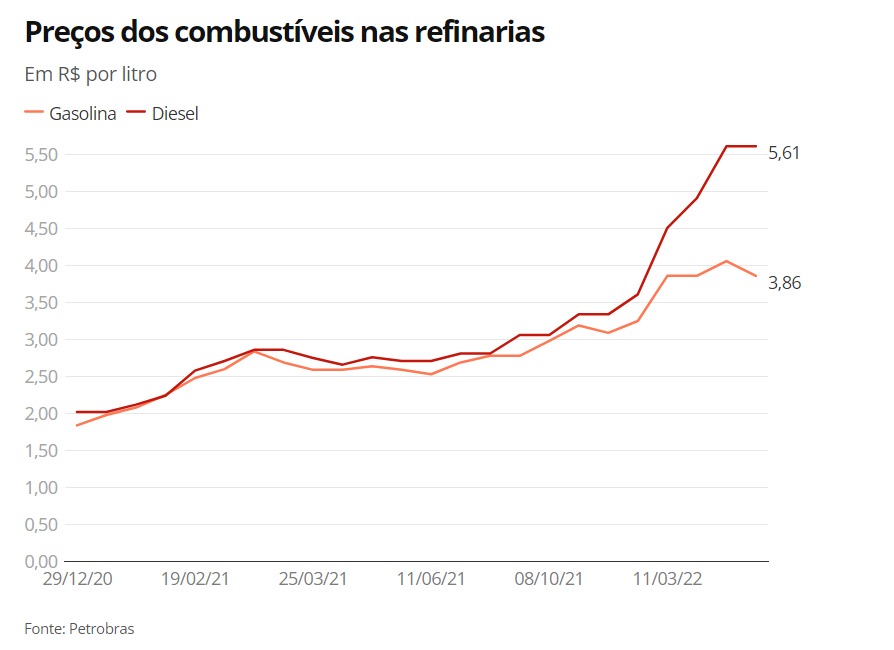 A Petrobras ainda se vale da redução dos preços do petróleo Brent desde fevereiro, que chegaram perto dos US$ 140 no estouro da guerra na Ucrânia e hoje giram em torno dos US$ 100.