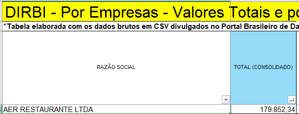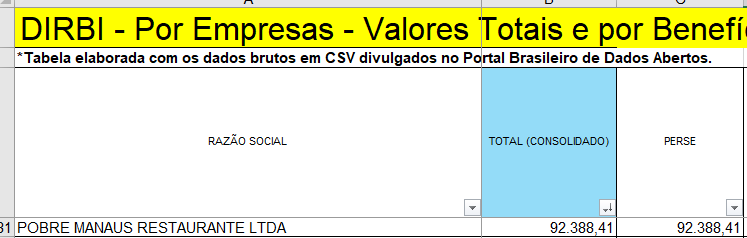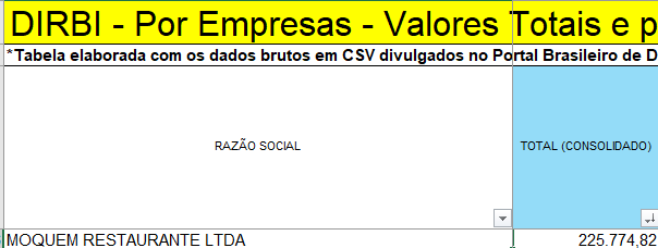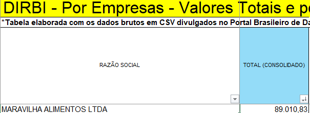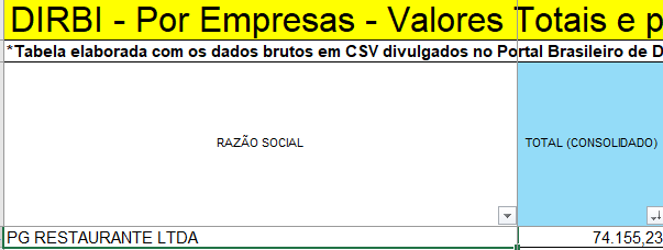 Restaurante Banzeiro, administrado pela MARAVILHA ALIMENTOS LTDA, foi beneficiado com R$ 89 mil.