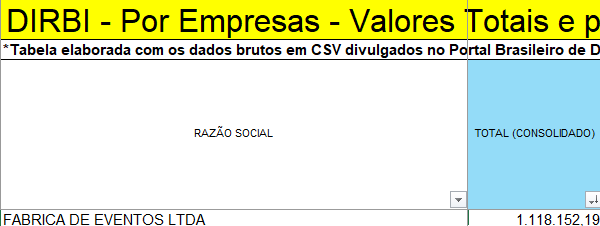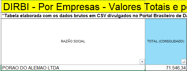 No setor da Alimentação, a Cachaçaria do Dedé recebeu R$ 1.926.922,01;