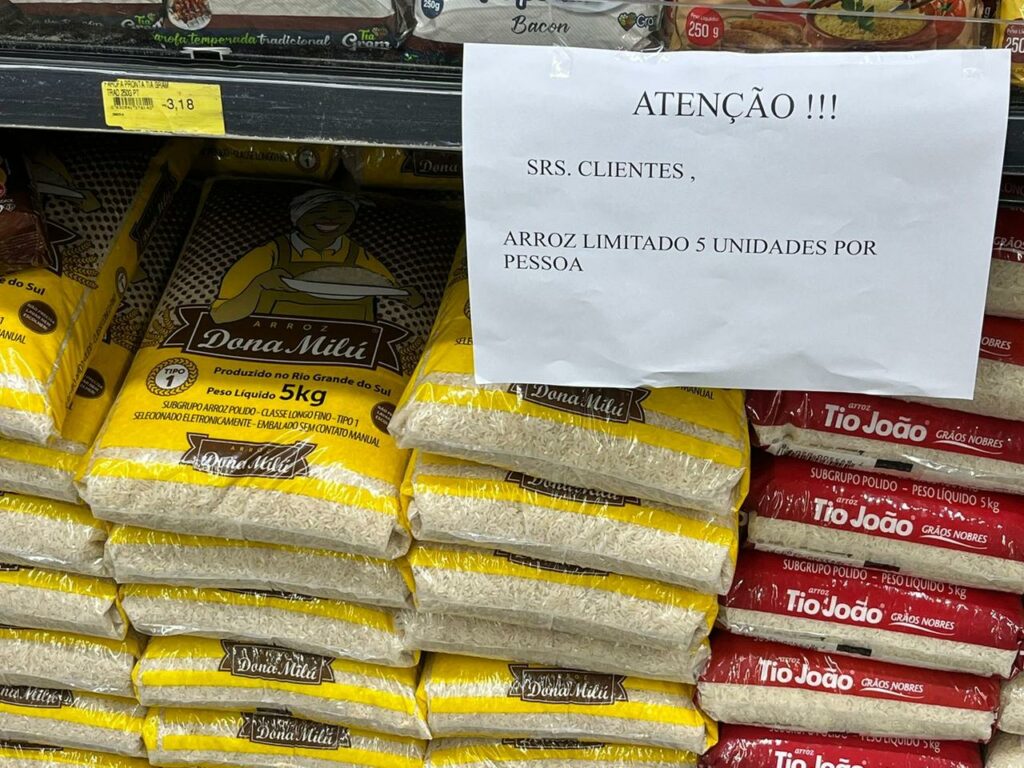 O temor de uma escassez de arroz já está se manifestando em algumas regiões do Brasil. Em Belo Horizonte, supermercados já estão limitando a compra de arroz a cinco unidades por pessoa, indicando preocupações com a possibilidade de desabastecimento.
