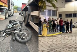 Vítimas de acidente entre carreta e moto na Avenida Rodrigo Otávio morrem em hospital de Manaus; veja vídeo