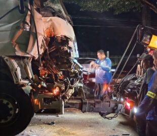 Urgente: grave acidente entre ônibus e caminhão deixa trânsito caótico na av. Rodrigo Otávio