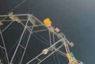Desespero: veja momento que homem fica pendurado em roda-gigante após assento quebrar em feira agropecuária