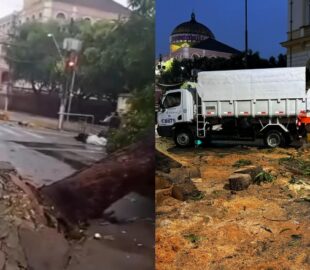 Temporal derruba árvore e destrói carro no Centro de Manaus; veja vídeo