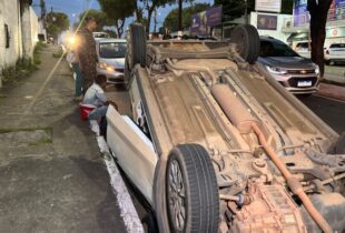 Acidente de trânsito deixa motorista inconsciente e carro capotado na Avenida Jacira Reis