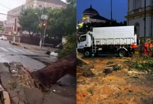 Temporal derruba árvore e destrói carro no Centro de Manaus; veja vídeo