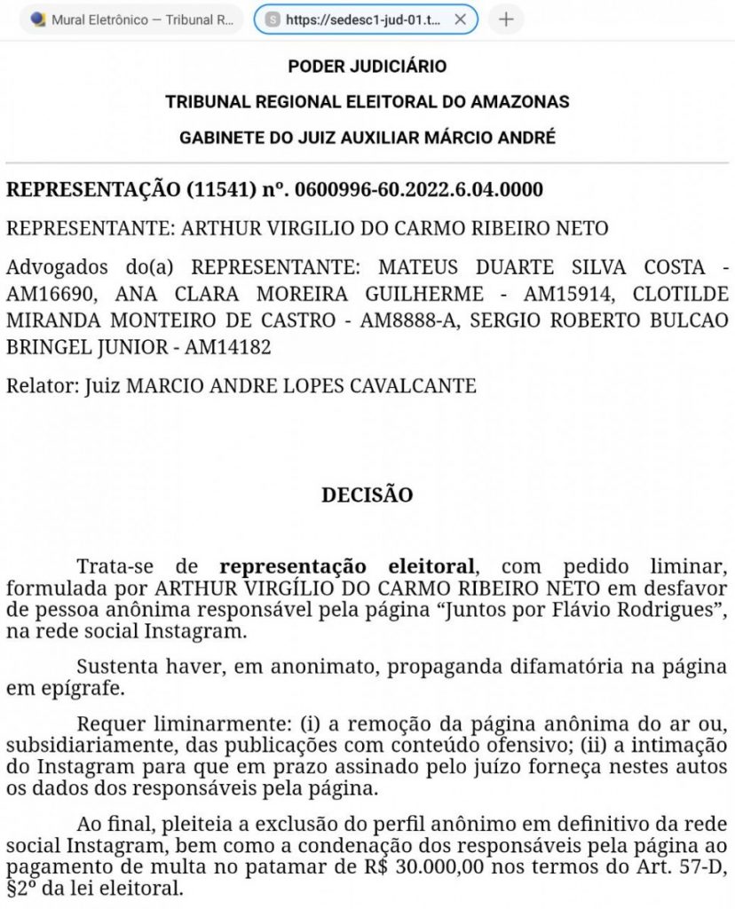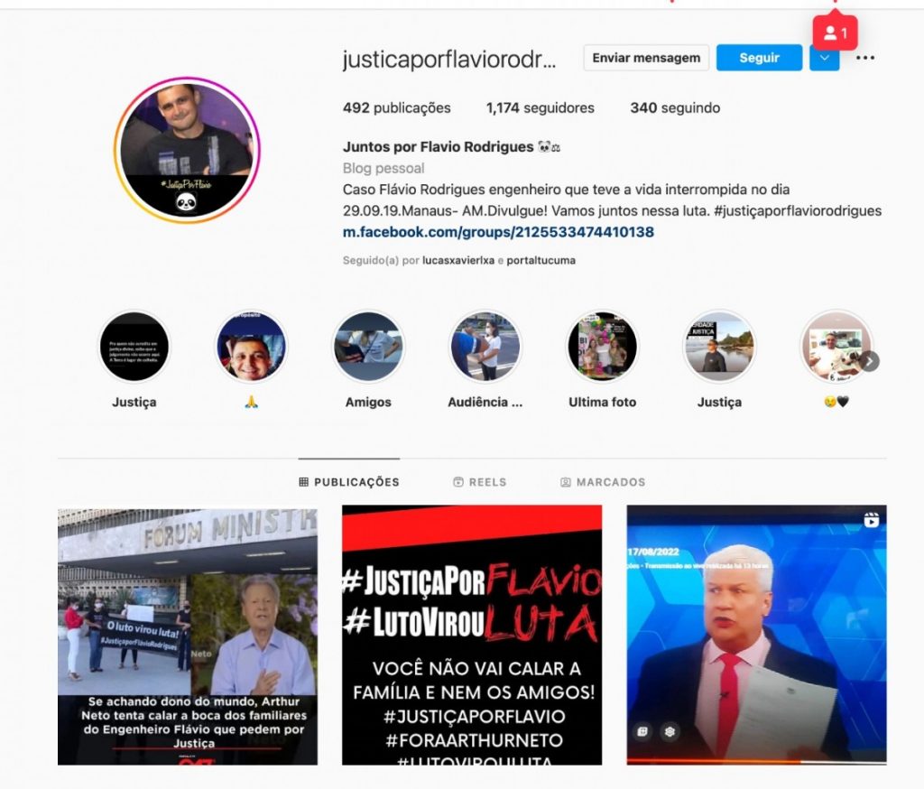 Manaus – O ex-prefeito de Manaus, Arthur Neto (PSDB), não satisfeito em apenas incomodar a família de Flávio Rodrigues, assassinado em 2019, usando o caso para se vitimizar na mídia, agora resolveu acionar a Justiça agora para excluir a página “Justiça por Flávio”, que os amigos e familiares do engenheiro criaram para pedir por justiça.