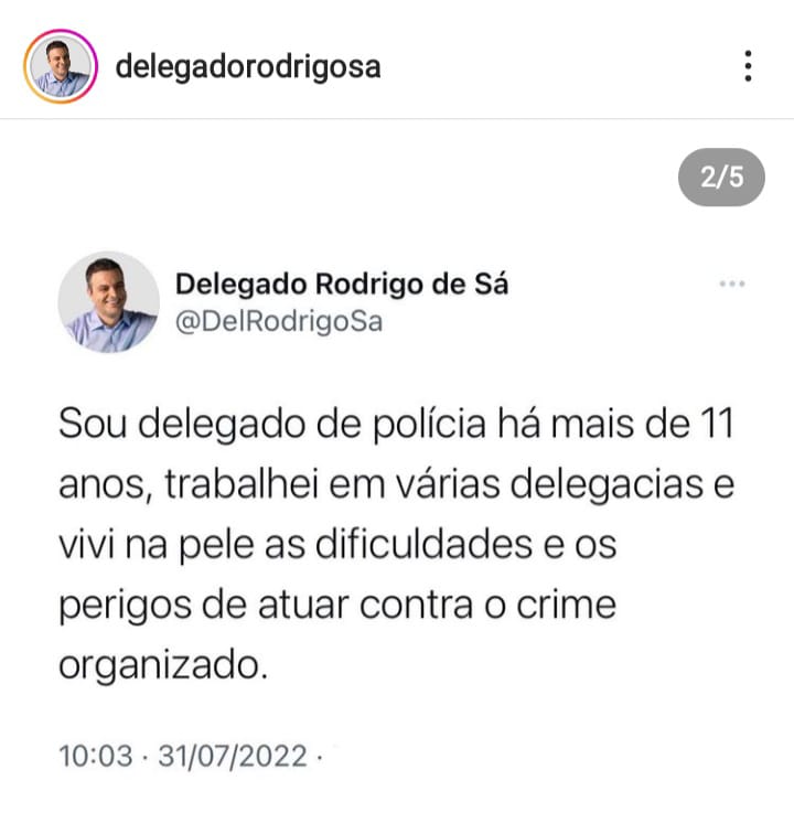 Manaus – A exemplo dos colegas servidores da segurança pública, o delegado e pré-candidato a deputado federal, Rodrigo de Sá, se pronunciou nas redes sociais repudiando as declarações de Amazonino Mendes (Cidadania) – candidato ao Governo do Estado, no qual afirmou dizendo que “a polícia se transformou e uma sucursal do crime”.
