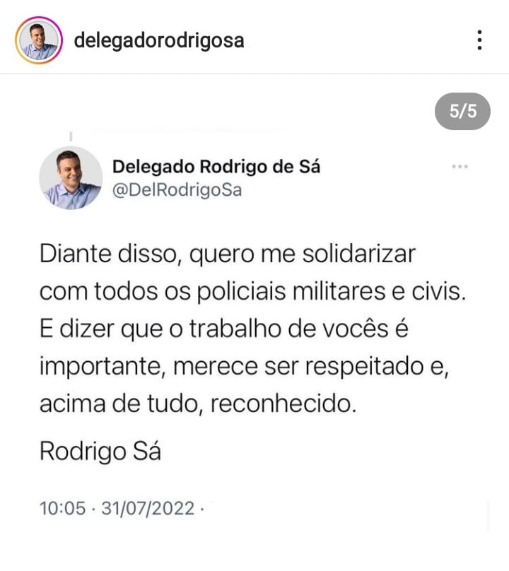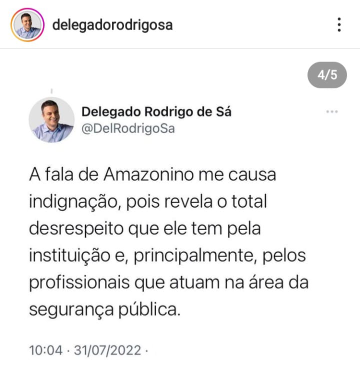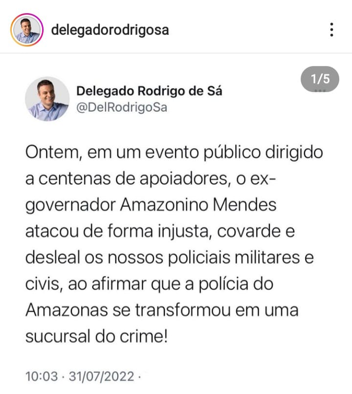 Em suas postagens, Rodrigo, afirma que Amazonino atacou de forma injusta, covarde e desleal, todos os policiais militares e civis. A fala causou indignação, visto que vai além dos ataques ao atual Governo, o que demonstra total desrespeito com os profissionais da segurança pública.
