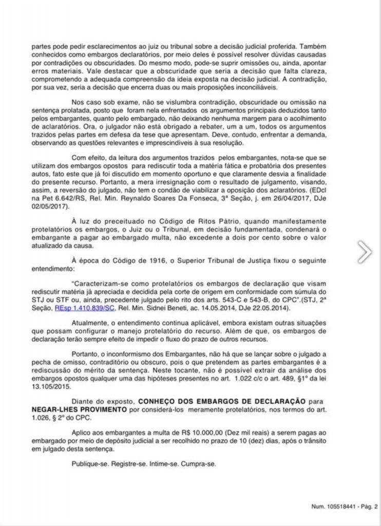 Em uma das suas últimas tentativas, Augusto Ferraz, tentou por meio dos seus advogados “embargos de declaração” – um instrumento cujo representante (advogado) pede para que o juiz esclareça algum ponto que possa ter gerado dúvida na interpretação, mas a Juíza Dinah Fernandes, negou o provimento alegando ser manifestante protelatórios.