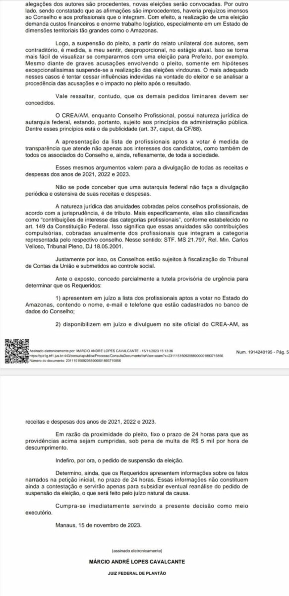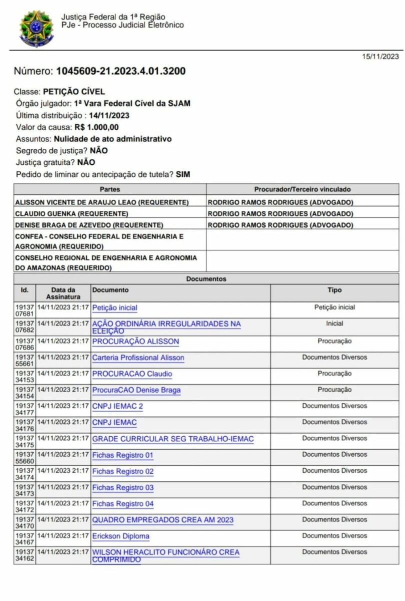 Manaus – Às vésperas das eleições gerais do Conselho Regional de Engenharia e Agronomia do Amazonas (Crea-AM), uma polêmica explode por conta de graves denúncias e incertezas judiciais. O advogado Rodrigo Ramos, representante da chapa “Crea Para Todos”, do candidato Alisson Leão, tomou medidas drásticas ao entrar com uma Ação Ordinária na Justiça Federal após descobrir graves irregularidades.