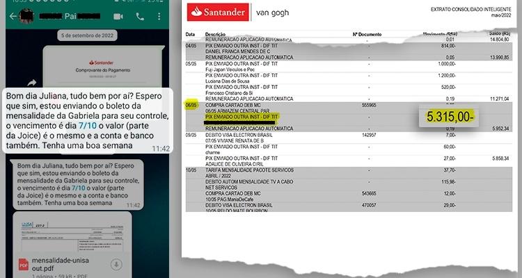 Juliana entregou ao UOL comprovantes de depósitos referentes ao pagamento da faculdade da filha da ex-chefe. Ela conta que Joice e o ex-marido fizeram um acordo para dividir ovalor da mensalidade da garota. Caberia a Juliana bancar a parte da ex-deputada: R$ 5.315 por mês.