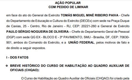 Brasil – O General Tomás Miné, apontado como escolhido por Lula para ser o novo Comandante do Exército, é alvo de uma Ação Civil Pública movida por militares do próprio Exército Brasileiro que o acusam de ter cometido irregularidades na condução de processos seletivos para cursos que geram promoção e adicionais nas remunerações deles, colegas de fardamento. O processo está registrado no número 1006392-84.2022.4.01.3400.