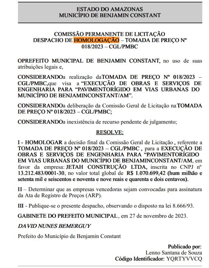 Amazonas – O prefeito David Bemerguy, de Benjamin Constant, está sendo alvo de críticas após a revelação de que destinará R$1 milhão para a realização de obras de pavimentação em parceria com a empresa Jetah Construção Ltda. A cidade, que já enfrenta desafios significativos, vê com preocupação o volume de recursos destinado a esse empreendimento específico.