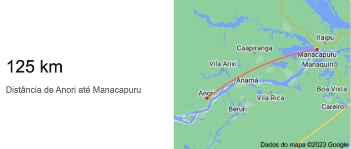 Vale ressaltar que Anori, está localizado a cerca de 125 km em linha reta de Manacapuru, são cidades separadas por uma considerável distância geográfica, conforme indica o Google Maps.