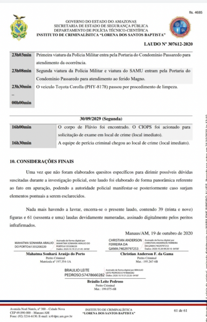 Laudo Oficial sobre a morte do engenheiro Flávio Rodrigues