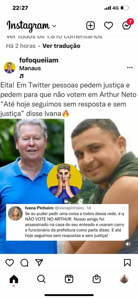 Em uma das postagens que circula nas redes sociais, uma usuária identificada como Ivana Pinheiro, pede aos seus seguidores que “não vote no Arthur”, fazendo deste ato um movimento de justiça pela morte do engenheiro Flávio Rodrigues, assassinado em 2019 na casa do enteado de Arthur.