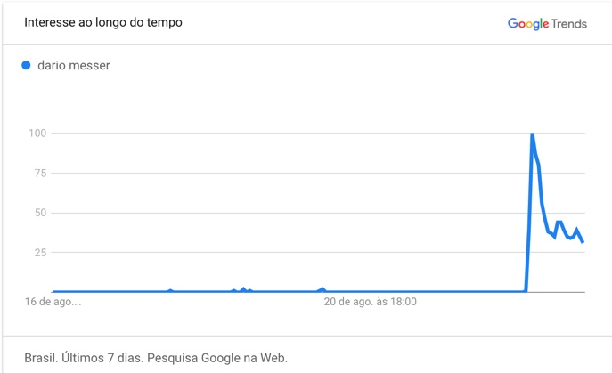 O nome de Dario Messer, que praticamente não atraía atenção nos últimos dias, inspirou uma leva de pesquisas em mecanismos de busca. Segundo o Google, o doleiro teve um pico de atenção às 22 horas da última segunda-feira, pouco depois da entrevista de Bolsonaro no Jornal Nacional.