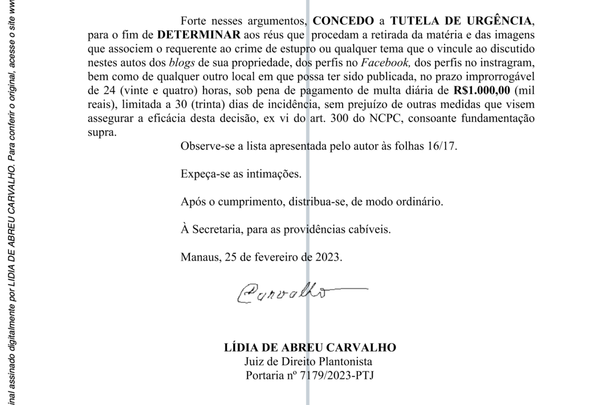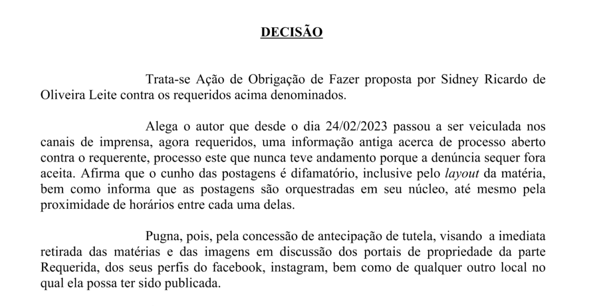 Sendo assim, o veículo de comunicação que se recusar a apagar as postagens terá que pagar uma multa de R$1 mil por dia.