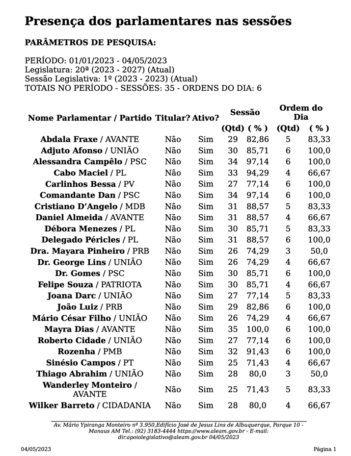 De acordo com a Constituição Federal, os deputados são obrigados a comparecer às sessões da Assembleia Legislativa, salvo em casos de licença ou justificativa de ausência. Além disso, a presença dos parlamentares é fundamental para a votação de projetos importantes que impactam a vida da população. Confira abaixo a lista completa de presença: