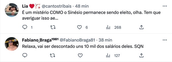Nas redes sociais, população teceu críticas aos nomes que lideram o quadro de faltosos. Confira:
