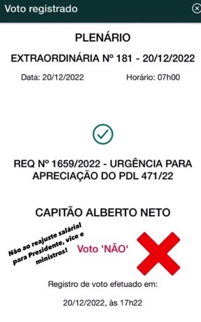 Amazonas – Diante a polêmica aprovação do PDL 471/2022 pela Câmara Federal e pelo Senado, que aumenta o salário de deputados, senadores, ministros, presidente e vice, apenas dois parlamentares do Amazonas se pronunciaram sumariamente contra o embuste e recusaram o projeto que beneficia a classe política em detrimento do povo.