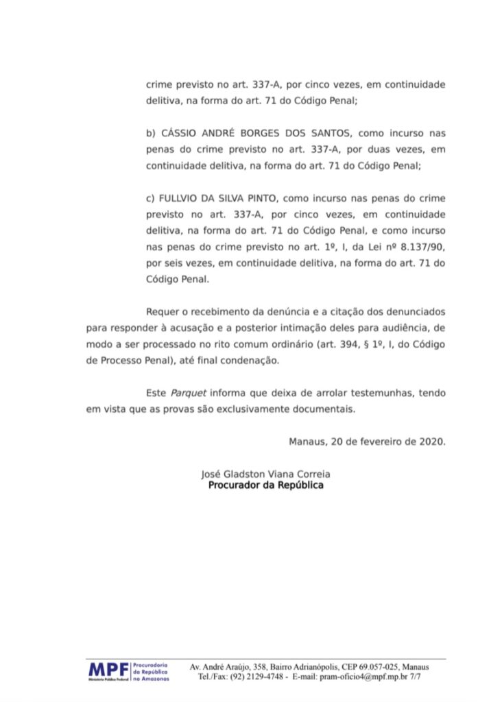 Mesmo assim, há quem queira permanecer cego a fim de gozar de privilégios passageiros e um tanto egoístas, enquanto quem é menos beneficiado padece. Por isso, prevalecendo o compromisso com a sociedade de informar com veracidade, o Portal CM7 Brasil destaca novamente o documento na íntegra, do MPF, que solicita a prisão do prefeito por pelo menos cinco anos pelos crimes de sonegação de contribuição previdenciária e crimes contra a ordem tributária.