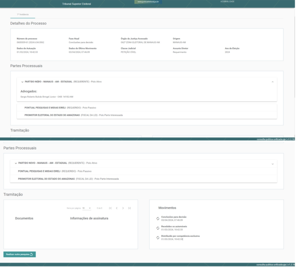 Simultaneamente, a pré-candidata à Prefeitura de Manaus, Maria do Carmo Seffair, também iniciou uma ação judicial contra o Instituto Pontual Pesquisa.
