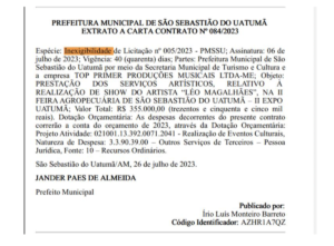 O contrato entre a Prefeitura e o cantor foi assinado em julho deste ano, mas surpreendentemente, a publicação no Diário Oficial dos Municípios do Amazonas só veio à tona agora, causando ainda mais indignação entre os moradores da cidade.