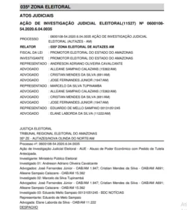 Amazonas – O prefeito da cidade de Autazes, Andreson Adriano Oliveira Cavalcante, juntamente com seu vice-prefeito Marcelo da Silva Tupinambá e Eduardo Mello Sampaio, proprietário de uma empresa de artigos fotográficos e filmagens, está sendo investigado pelo Ministério Público Eleitoral (MPE) do Tribunal Regional Eleitoral no Amazonas (TRE-AM) por suspeita de crime de abuso de poder econômico.