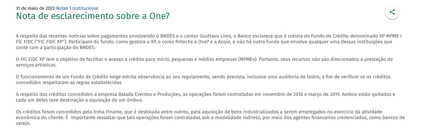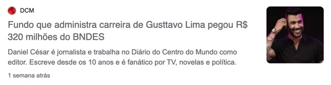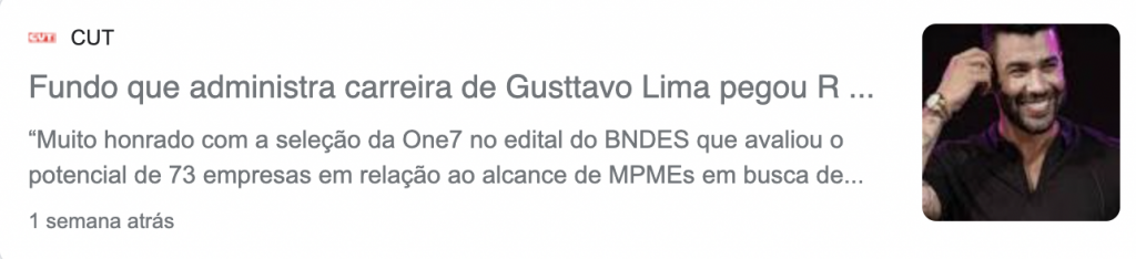 Brasil – Uma publicação compartilhada por blogs de esquerda afirma que o cantor Gusttavo Lima recebeu R$ 320 milhões do Banco Nacional de Desenvolvimento Social circula pelas redes sociais. É Fake. Na realidade, o financiamento do banco foi feito a um fundo de investimentos sem ligação com a carreira do sertanejo.