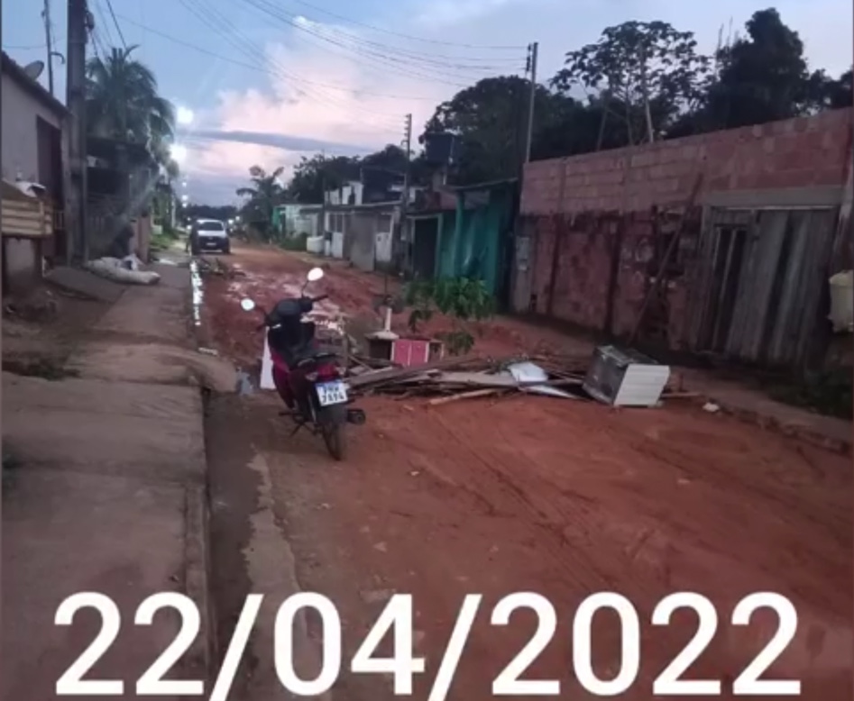 Há 1 ano e quatro meses atrás, as máquinas da prefeitura na gestão de Patrícia Lopes estavam na primeira rua do Galo da Serra, com promessas de melhoria estrutural para pedestres e veículos em anúncio publicado nas redes da própria prefeita.